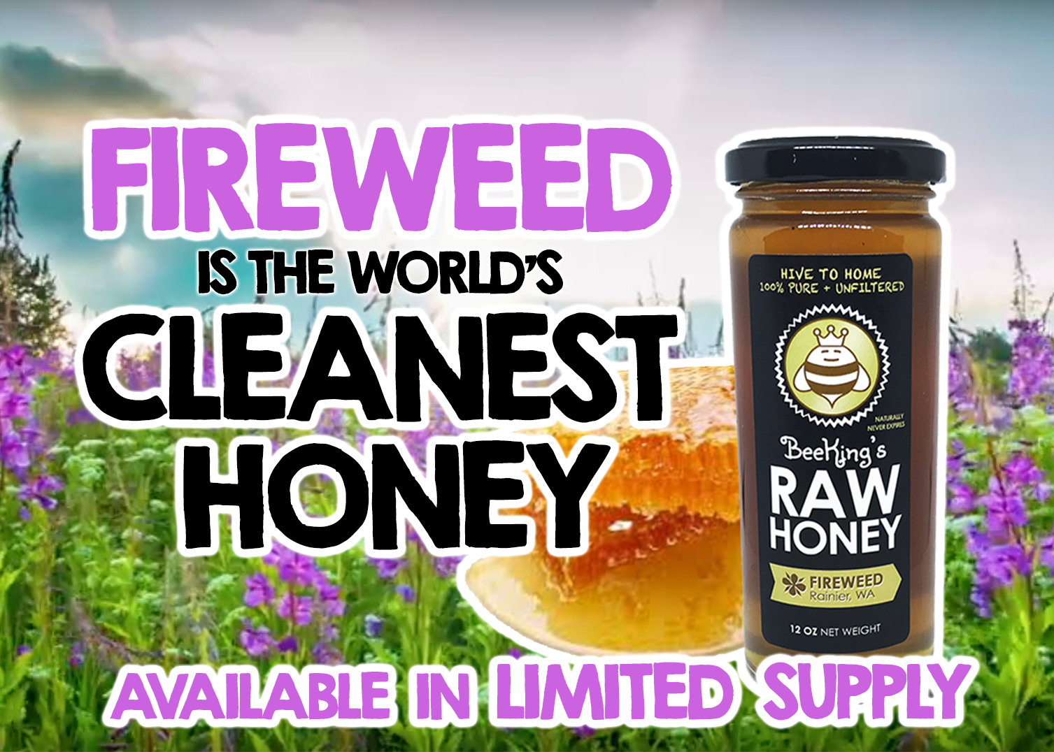 A true story of rebirth after disaster, the cleanest honey in the world comes from the first nectar to grow after a forrest fire. Known as the Champagne of Honey, this variety only grows in the Pacific Northwest and Alasks.